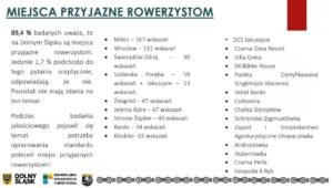 Jak mówi Adam Zawada – Prezes Zarządu Dolnośląskiej Organizacji Turystycznej: Dolny Śląsk to silna marka rowerowa w Polsce. Strefa MTB Sudety, system tras Singletrack Glacensis i Dolnośląska Kraina Rowerowa to obszary, które w promocji Polski są wymieniane jako krajowi liderzy. Bardzo nas to cieszy, bo wynika to nie tylko z walorów przyrodniczych, ale też pracy aktywistów rowerowych na tych terenach. Siłą naszego stowarzyszenia jest łączenie tej energii i oferowanie turystom wszechstronnej informacji rowerowej, a wyniki badania i opracowywana strategia mają w tym jeszcze pomóc.