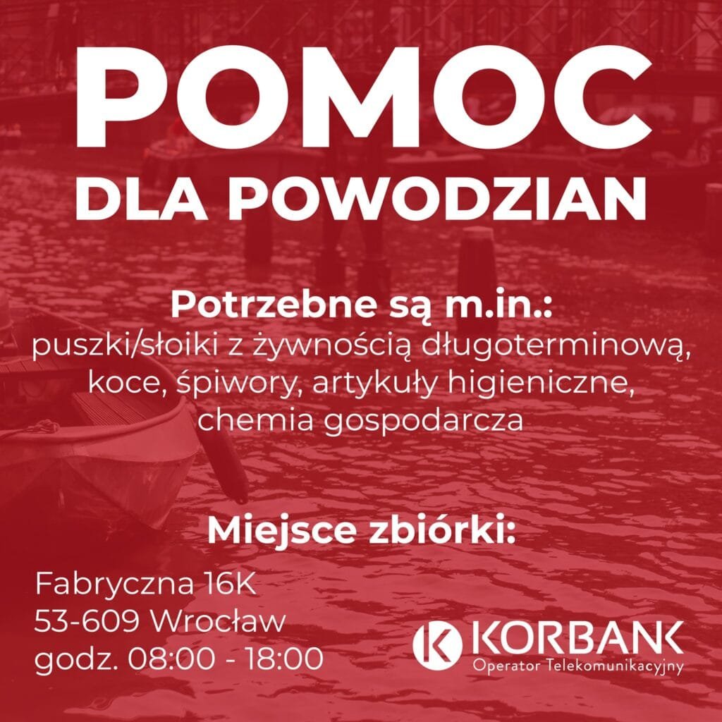 Mając na uwadze dramatyczną sytuację powodziową, uruchamiamy w naszym Biurze Obsługi Klienta we Wrocławiu miejsce zbiórki podstawowych artykułów, które przekażemy do HUB Wrocław przy ulicy Tynieckiej.