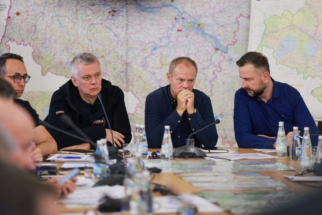 Trwa kolejny dzień walki ze skutkami powodzi i podtopień w południowo-zachodniej Polsce. Premier Donald Tusk przebywa we Wrocławiu, aby koordynować działania służb zaangażowanych w akcje ratownicze i pomocowe dla poszkodowanych mieszkańców. O godz. 7:00 w Dolnośląskim Urzędzie Wojewódzkim szef rządu przewodniczył posiedzeniu sztabu kryzysowego z udziałem m.in. Wicepremiera Władysława Kosiniaka-Kamysza, Ministra Spraw Wewnętrznych i Administracji Tomasza Siemoniaka oraz Ministra Infrastruktury Dariusza Klimczaka, a także strażaków, policjantów, żołnierzy i samorządowców. Zwrócił się do służb, by nie lekceważyły sygnałów od mieszkańców, którzy potrzebują pomocy w trudnej sytuacji. Zapowiedział także, że powstanie specjalny program służący odbudowie terenów dotkniętych powodzią. Ponadto, Donald Tusk zdecydował o rozszerzeniu obszaru objętego stanem klęski żywiołowej.