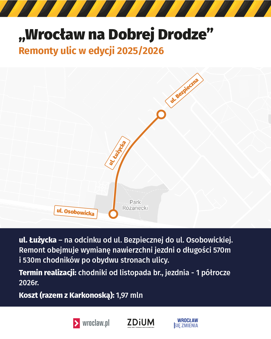 Tutaj remont obejmie odcinek od obwodnicy do ul. Jerzmanowskiej. Zanim jednak ruszą główne roboty, powstanie tymczasowe połączenie ul. Rumiankowej z ul. Żernicką. Dzięki temu możliwe będzie wyznaczenie objazdu podczas późniejszych prac.