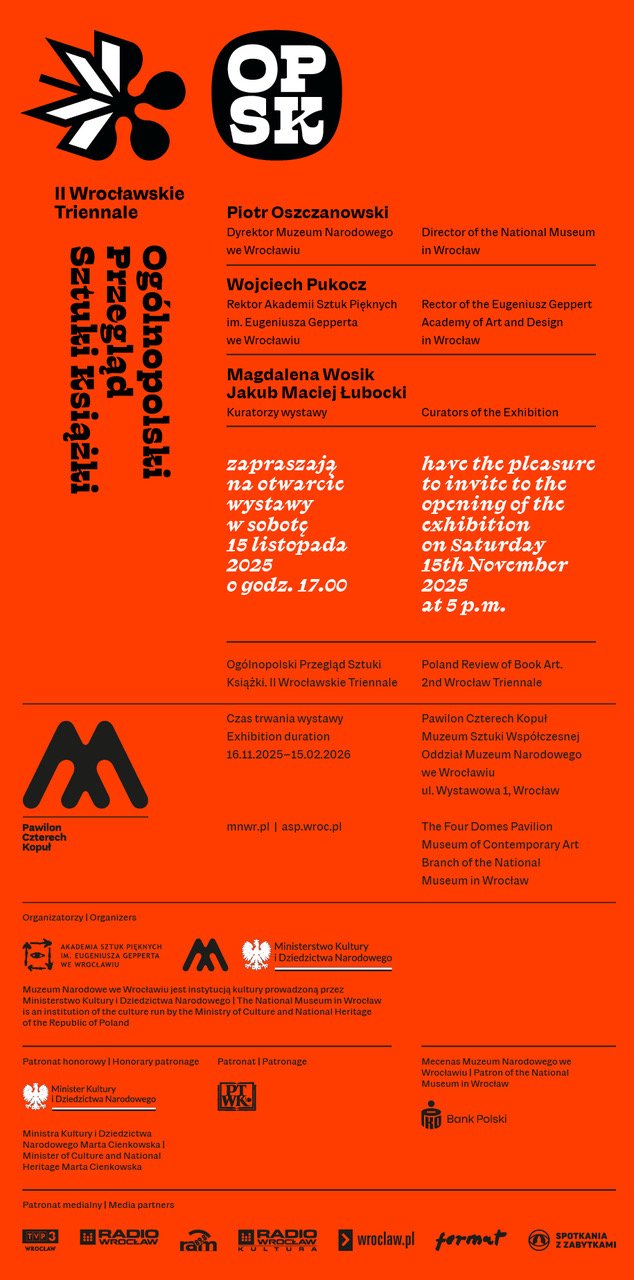 Czy książka w erze mediów społecznościowych wciąż potrafi przyciągnąć uwagę? Czy może konkurować z niekończącym się scrollowaniem? Na te pytania odpowiada tegoroczna edycja Ogólnopolskiego Przeglądu Sztuki Książki, która 16 listopada otworzy się w Pawilonie Czterech Kopuł Muzeum Sztuki Współczesnej – oddziale Muzeum Narodowego we Wrocławiu.